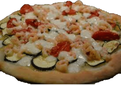 Pomodoro, Mozzarella, Gamberetti, Zucchine, Pomodorini e Grana
