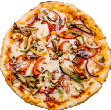 Pomodoro, Mozzarella, Peperoni, Melanzane e Cipolla