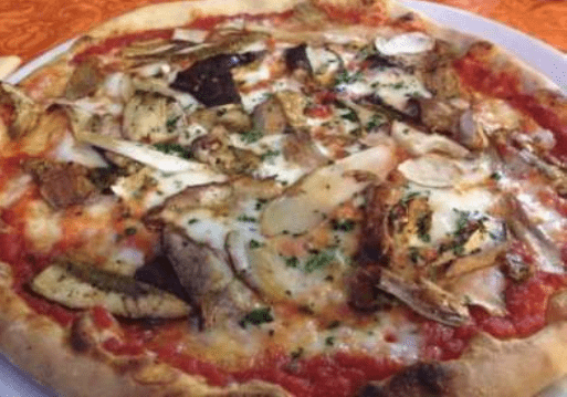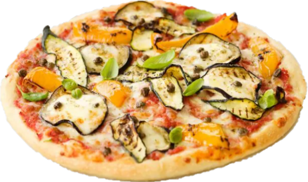 Pomodoro, Mozzarella, Funghi freschi, Prosciutto cotto, Carciofini e Olive nere